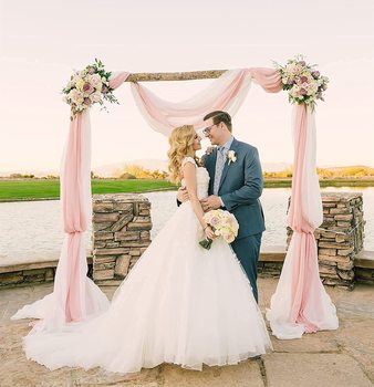 Tela drapeada de arco de boda moderna, 1 panel, cortinas de gasa transparente azul bebé para decoración de boda/pastel